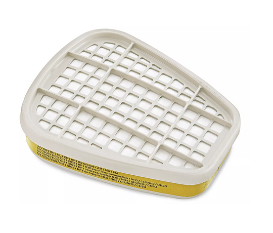 Cartridge and filter in one. Permanent P100 filter adds particulate protection. NIOSH approved for protection against ammonia, chlorine, chlorine dioxide, formaldehyde, hydrogen chloride, hydrogen fluoride, hydrogen sulfide, methylamine, organic vapor and sulfur dioxide. For use with 3M...Regular price $25.42 -