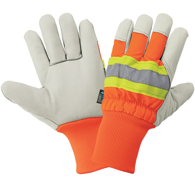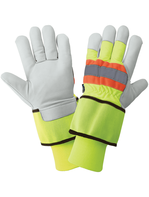 Global Glove High-Visibility Insulated Cowhide Leather Palm Gloves with Safety Cuff