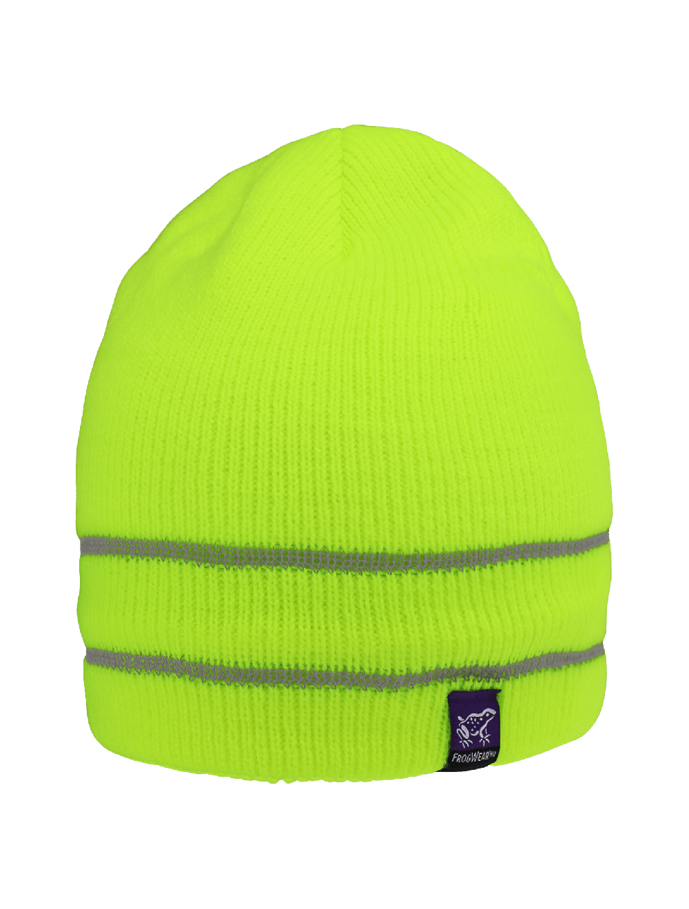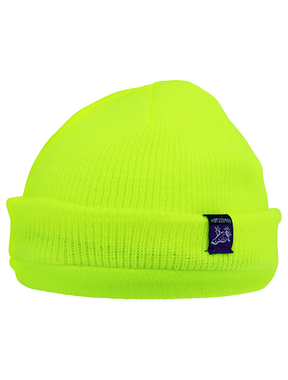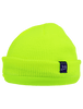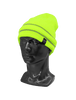 This dual-layer low-temperature beanie hat is high-visibility yellow/green with a stretch acrylic rib-knit exterior. The 150g/m² polyester fleece interior adds warmth. Features dual silver reflective yarn stripes to increase visibility in low light.