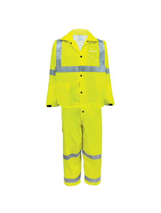 These self-extinguishing rain bibs are high-visibility yellow/green 0.18 mm polyurethane-coated 150D oxford polyester. The 3M™ reflective material increases low-light visibility. The bibs feature fully taped seams, nonconductive hardware, shoulder straps, one outside pocket, and a snap...Regular price $69.90 -