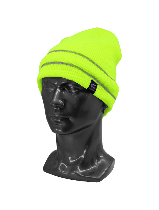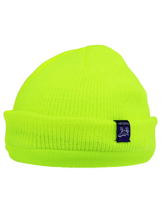 This dual-layer low-temperature beanie hat is high-visibility yellow/green with a stretch acrylic rib-knit exterior. The 150g/m² polyester fleece interior adds warmth. Features dual silver reflective yarn stripes to increase visibility in low light. Features Dual-layer low-temperature...Regular price $7.02 -