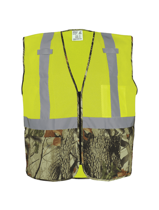 Global Glove FrogWear® HV High-Visibility Yellow/Green Safety Vest with Camouflage Bottom