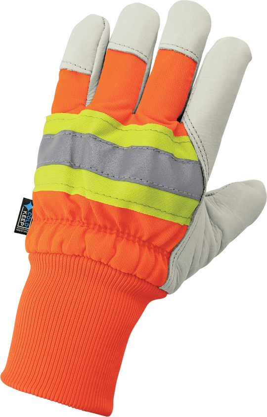 Global Glove High-Visibility Standard-Grade Cowhide Leather Insulated Gloves with Knit Wrist