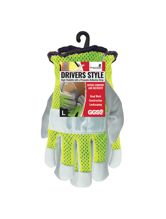 Global Glove High-Visibility Mesh Back Premium Goatskin Leather Palm Drivers Style Gloves