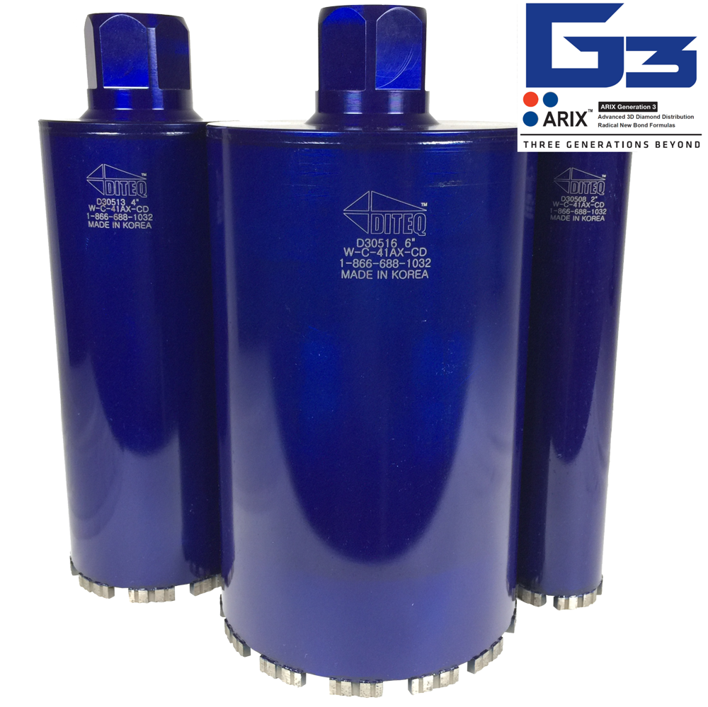 When the job requires only wet drilling you need the ARIX technology advantage to provides faster cutting and longer life. Aggressive segment design grips surface to prevent slippage for faster hole starting. ARIX technology gives you maximum productivity with the lowest possible cost per inch /foot cut. Diamonds are individually placed in strategic positions to maximize cutting performance. Works equally well in cinder block, concrete block, and brick. Turbo style segments to offer superior drilling speed