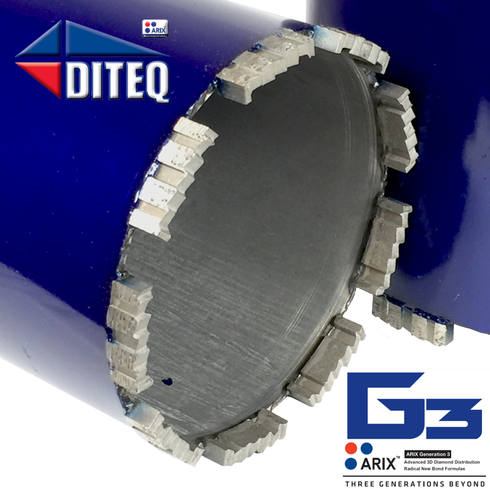 When the job requires only dry drilling you need the ARIX technology advantage to provides faster cutting and longer life. Aggressive segment design grips surface to prevent slippage for faster hole starting. ARIX technology gives you maximum productivity with the lowest possible cost per inch /foot cut. Diamonds are individually placed in strategic positions to maximize cutting performance. Works equally well in cinder block, concrete block, and brick. Turbo style segments to offer superior drilling speed