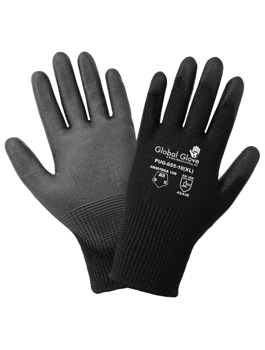 Global Glove Smooth Polyurethane-Coated Black Seamless HPPE Cut, Abrasion, and Puncture Resistant Gloves