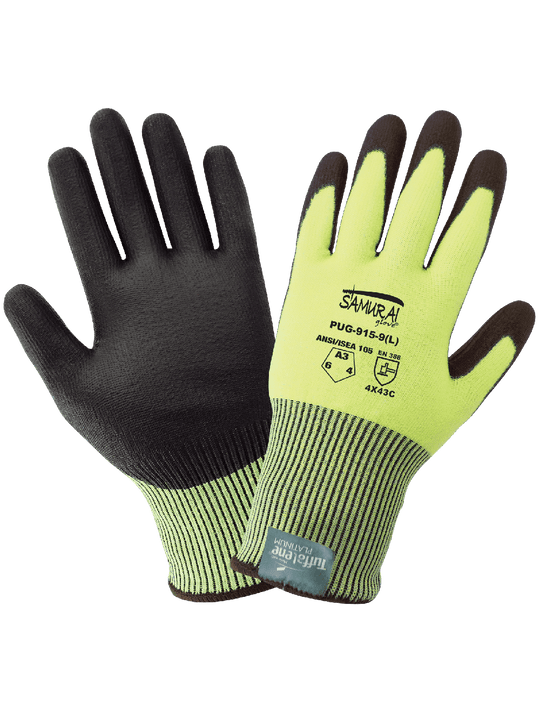 Global Glove Samurai Glove® Cut Resistant, High-Visibility 15-Gauge Tuffalene® Platinum Polyurethane Coated Gloves - LIMITED STOCK