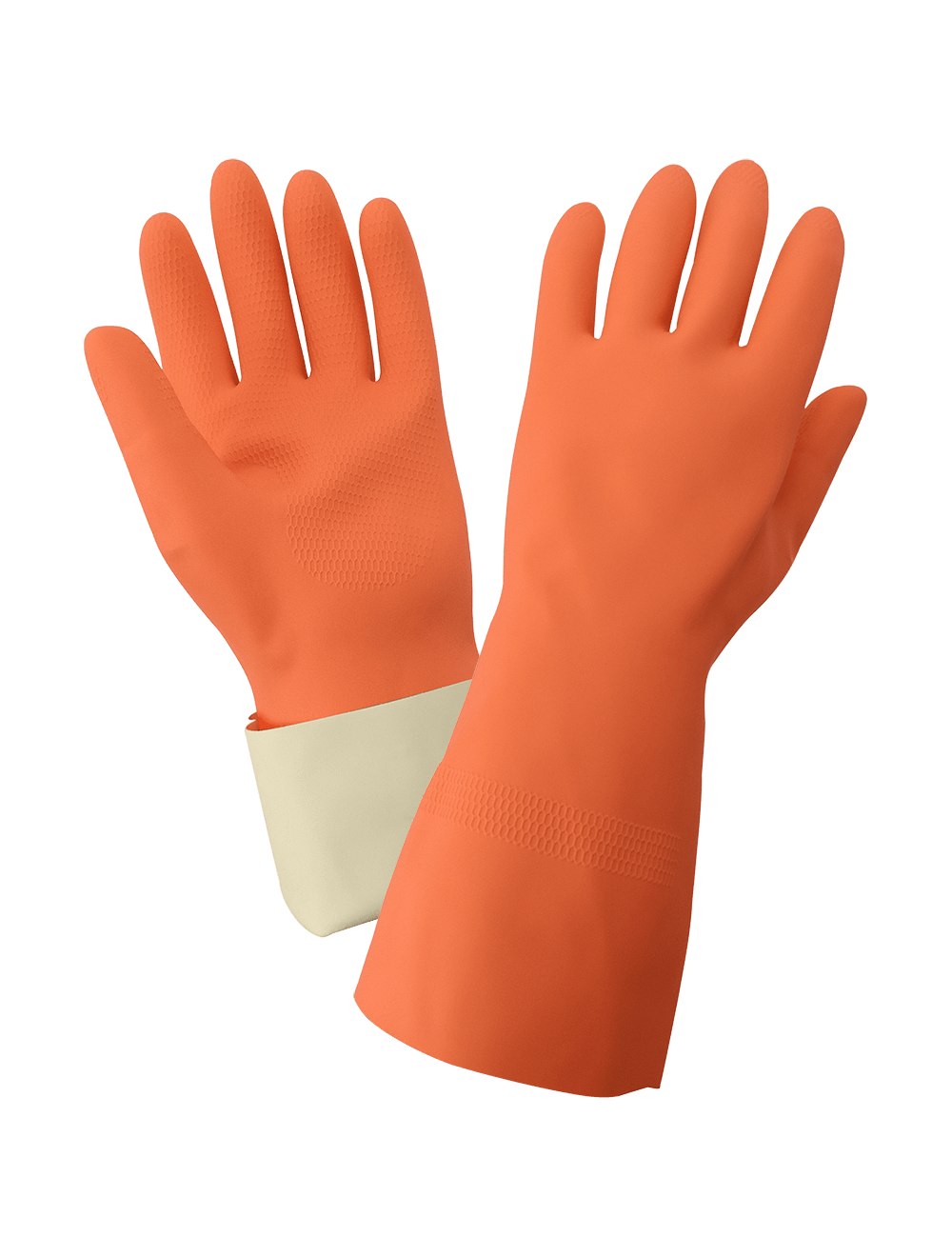 Global Glove FrogWear® Heavy 30-Mil Flock-Lined Orange Rubber Latex with Honeycomb Pattern Grip Unsupported Gloves