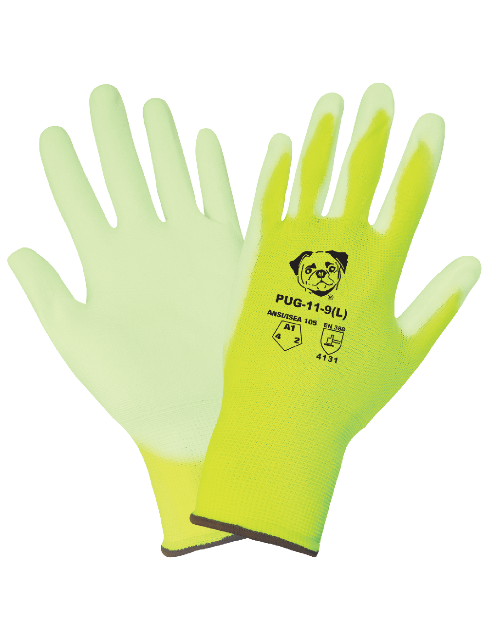 Global Glove PUG™ High-Visibility Polyurethane Coated Nylon Gloves with Cut, Abrasion, and Puncture Resistance