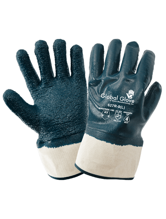 Global Glove Premium Solid Nitrile Fully Coated Two-Piece Jersey Gloves with Rough Finish
