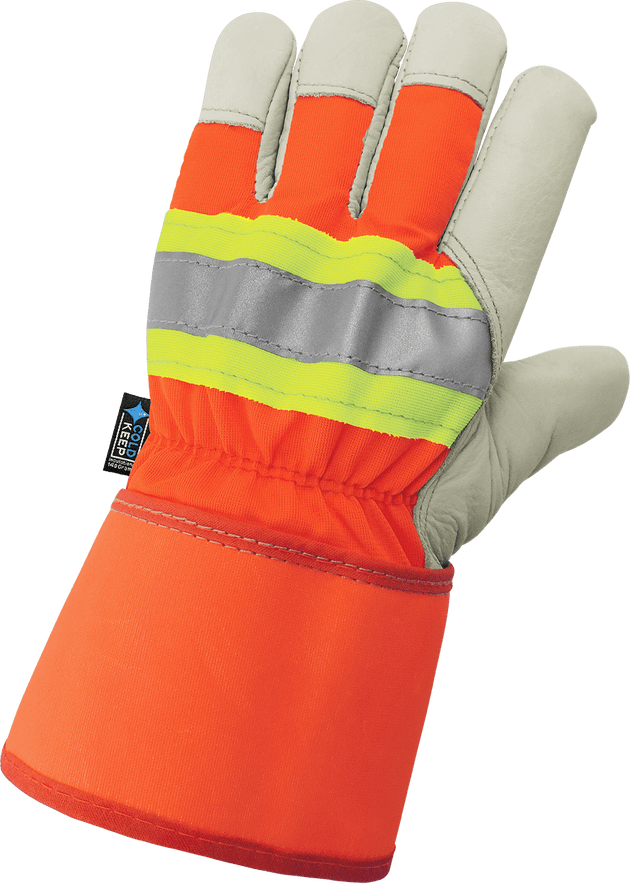Global Glove High-Visibility Insulated Cowhide Leather Palm Gloves with Safety Cuff