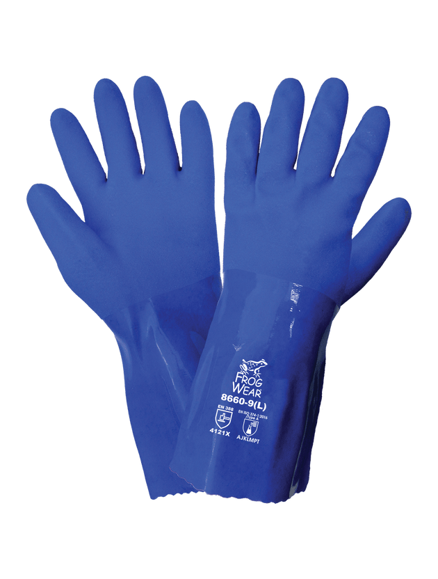 Global Glove FrogWear® Triple-Coated Blue PVC Abrasion Resistant Chemical Handling Gloves