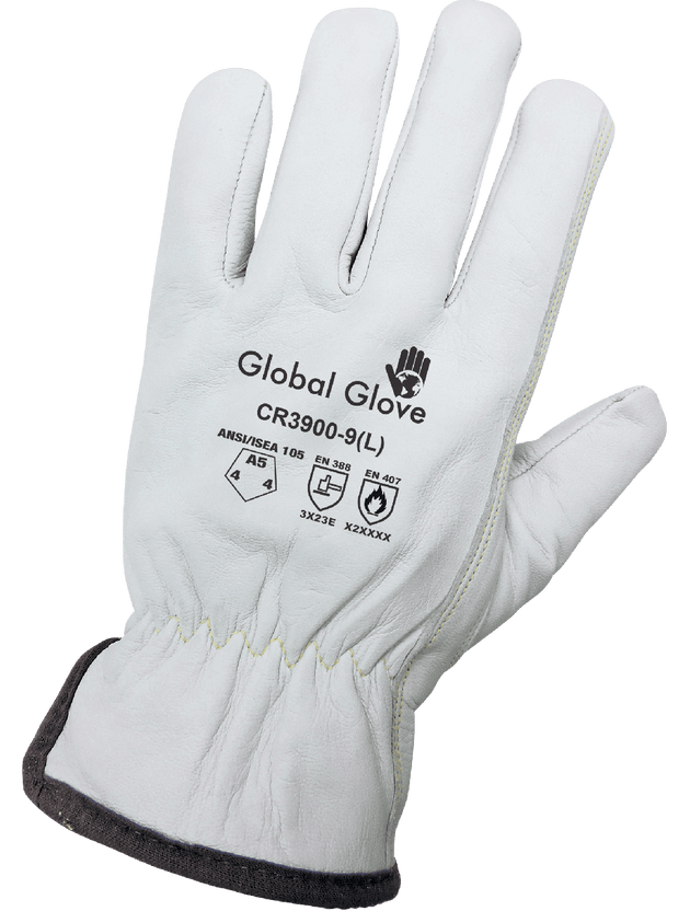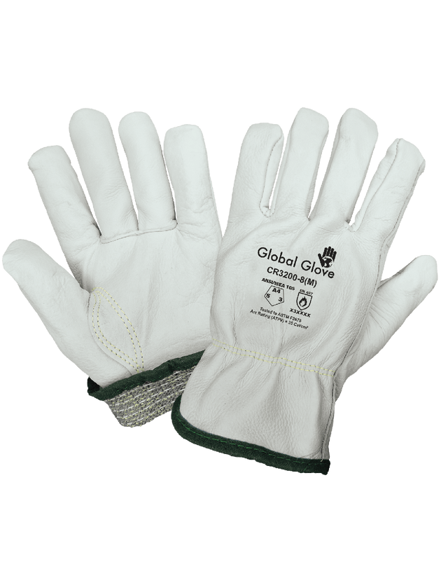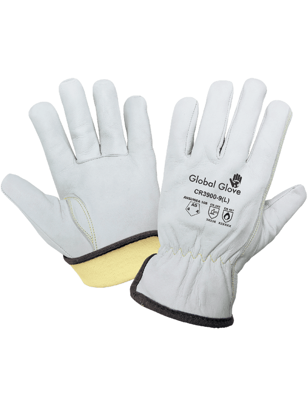 Global Glove Cut, Abrasion, Puncture, and Heat Resistant Cowhide Leather Drivers Style Gloves with Aralene® Liner