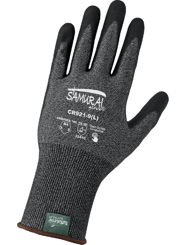 Global Glove Samurai Glove® Salt-and-Pepper Cut Resistant Polyurethane Coated Touch Screen Gloves Made with 21-Gauge Tuffalene® Platinum