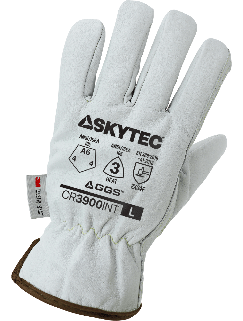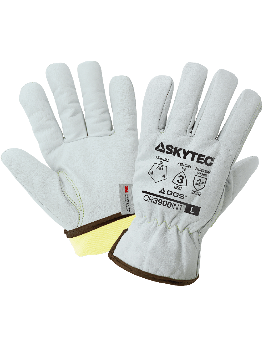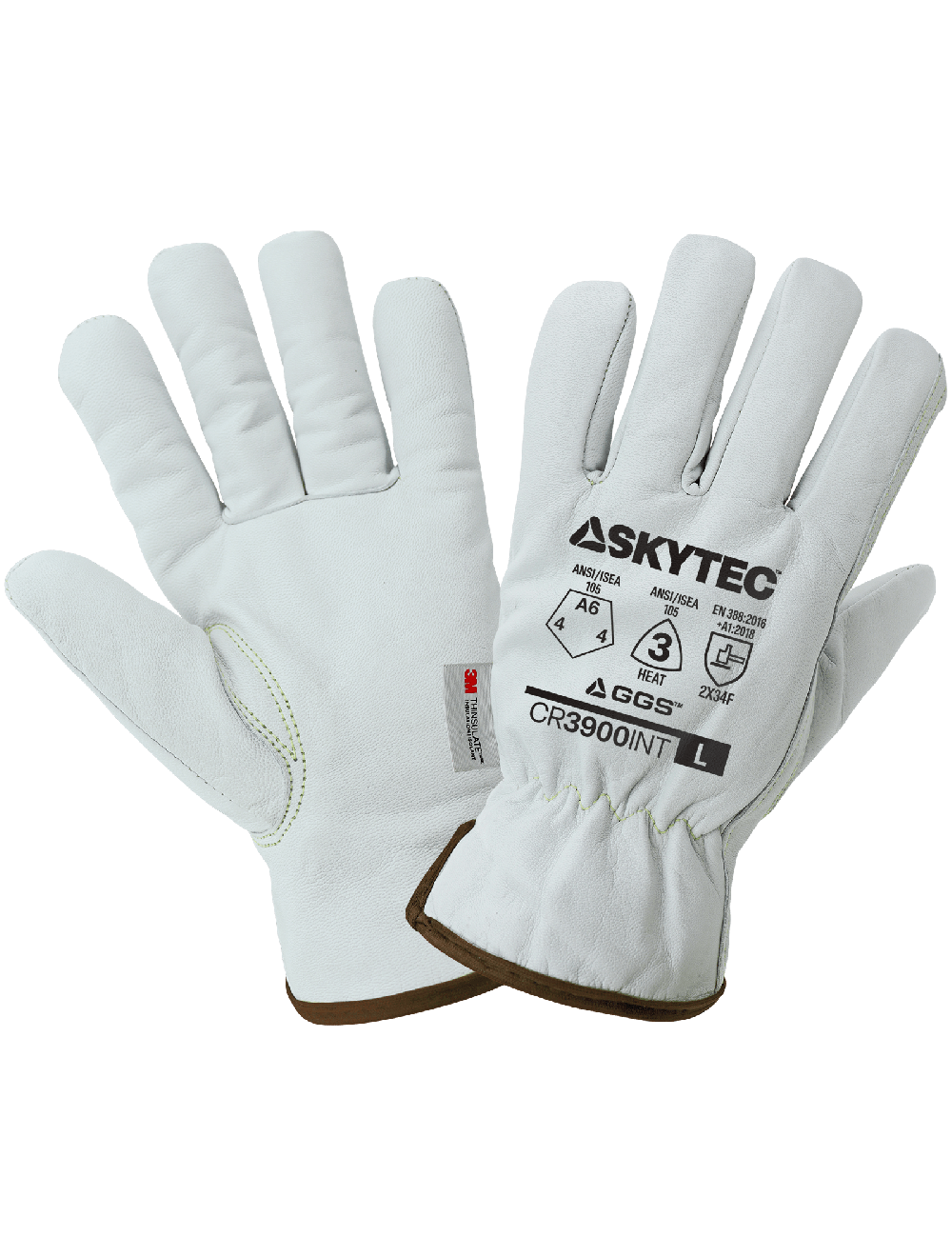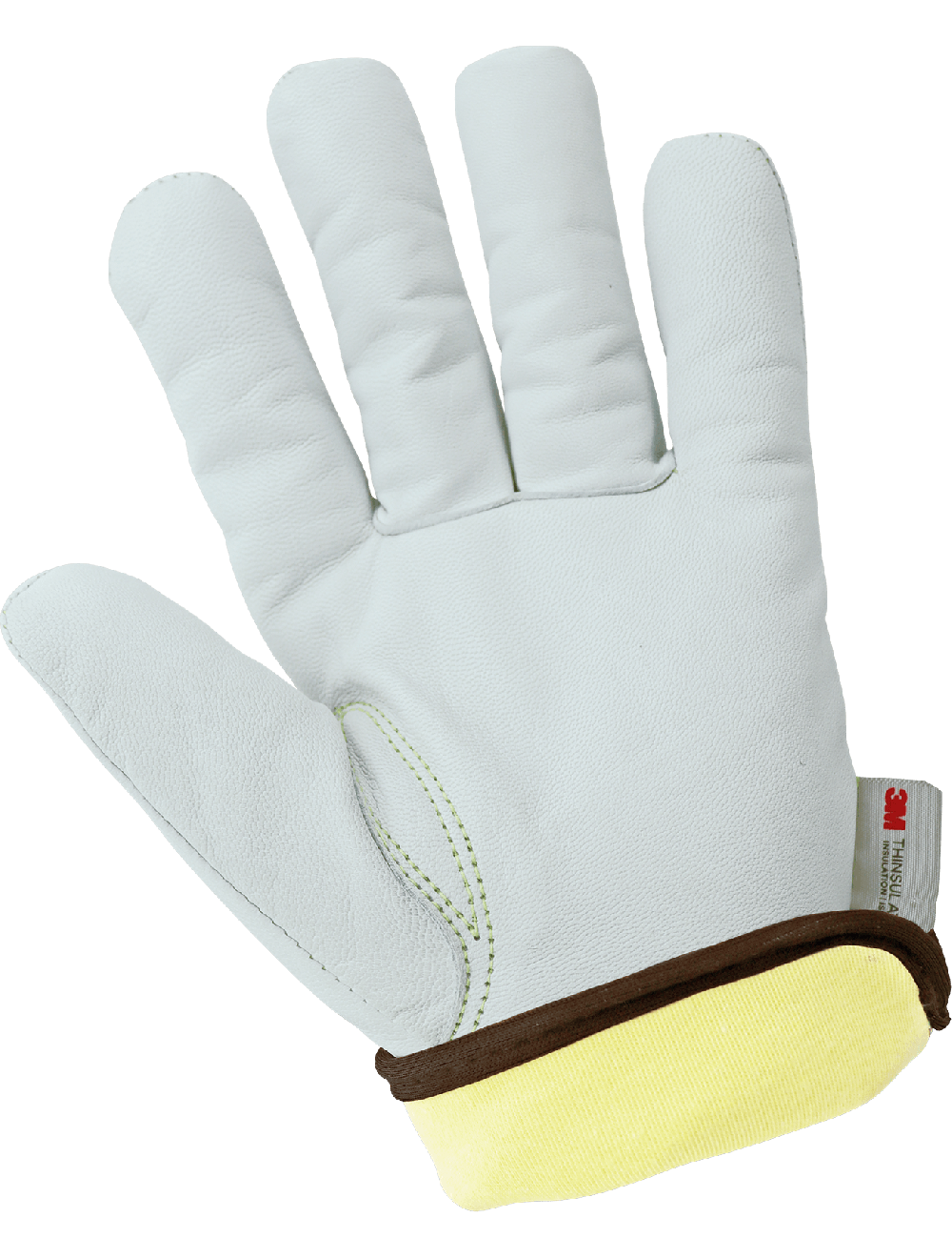 This standard-grade grain goatskin leather drivers glove is an outstanding low-temperature, cut-resistant option that features a thin Aralene® (enhanced aramid fiber) liner sewn-in. 100 grams of 3M™ Thinsulate™ provides warmth. Features a keystone thumb and an open cuff for easy donning and doffing. Sewn with aramid fiber.