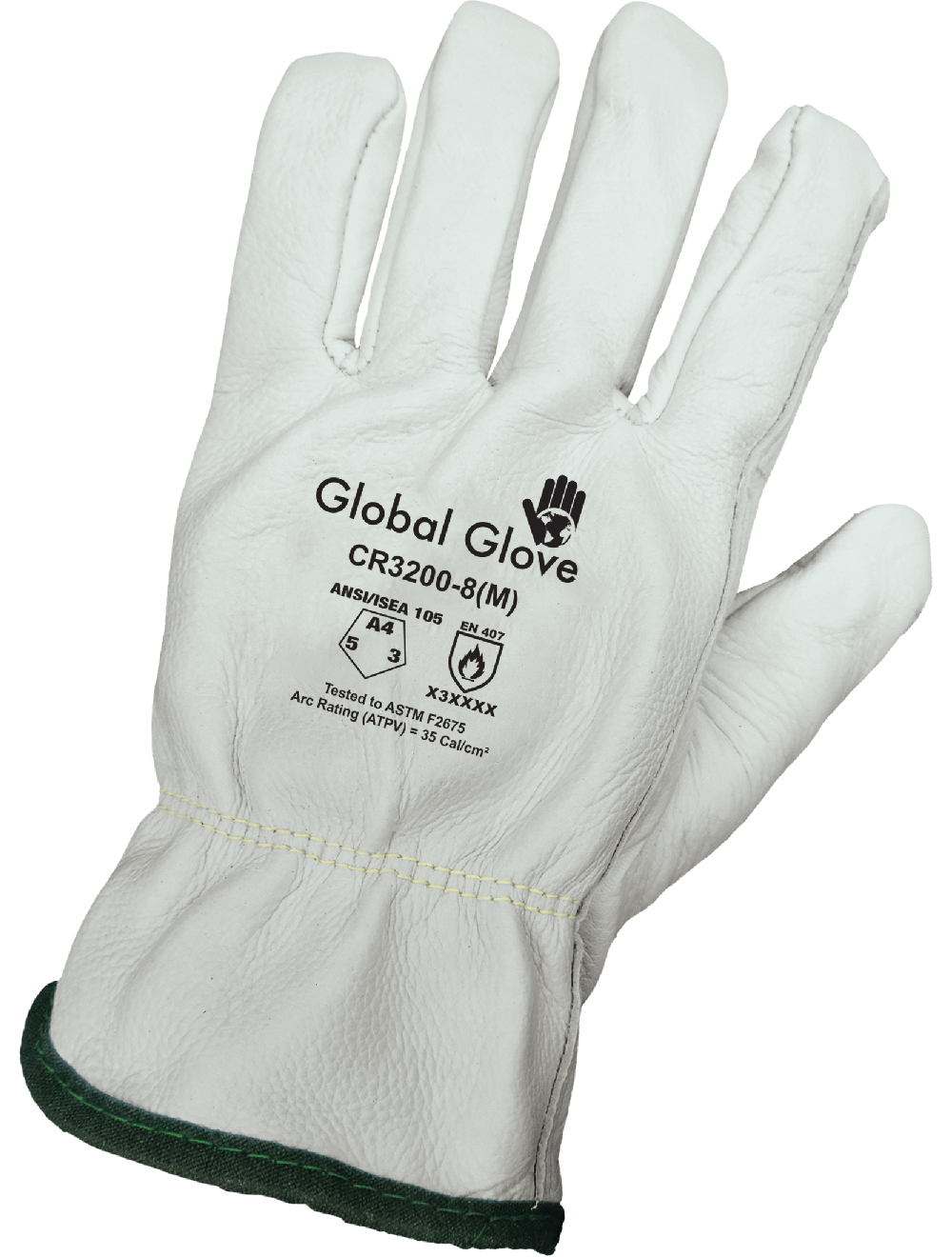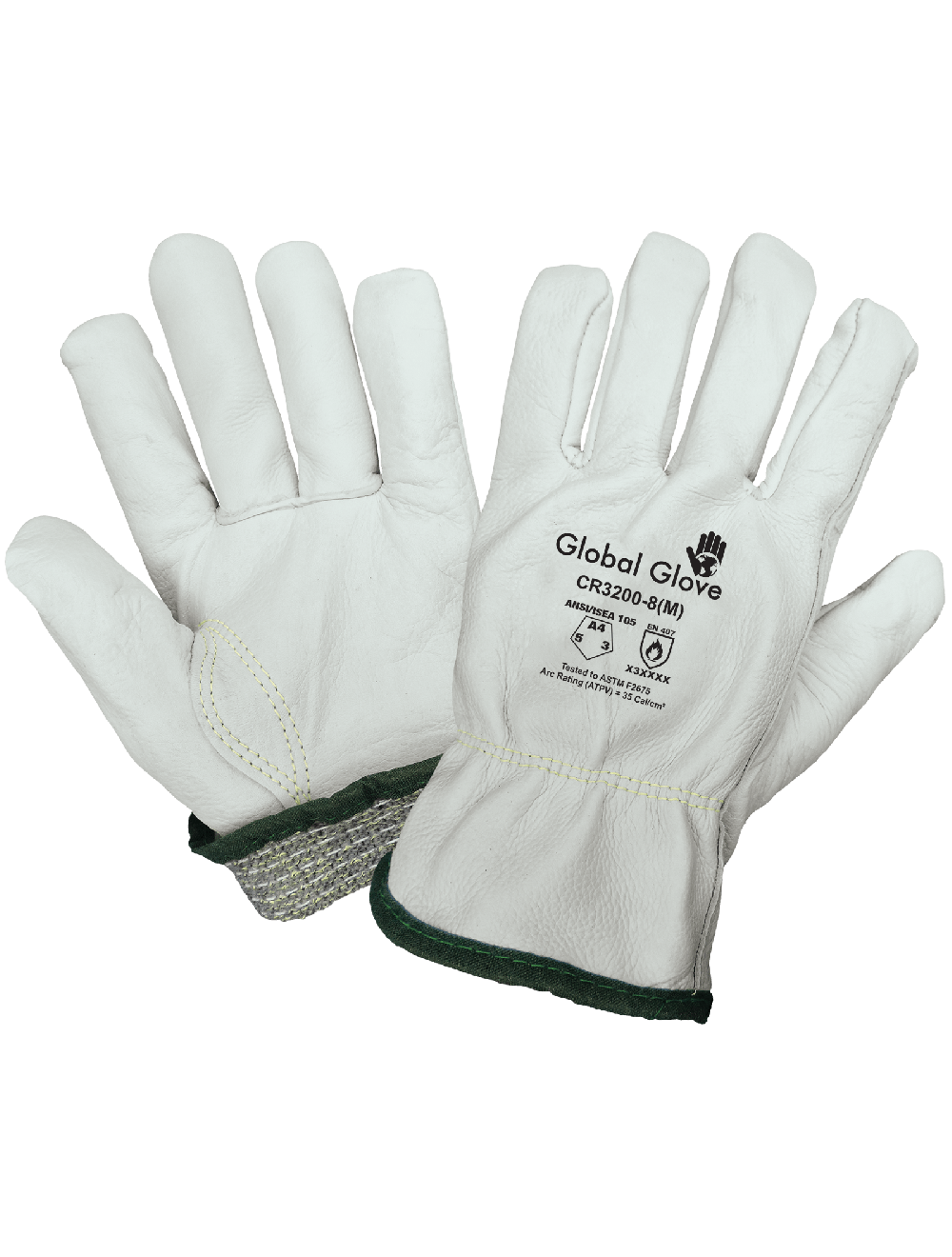 Global Glove Cut, Abrasion, Puncture, and Heat Resistant Cowhide Leather Drivers Style Gloves with Aralene® Liner