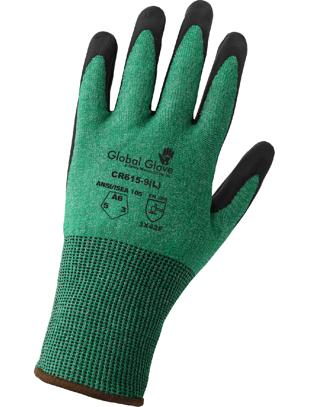 These cut-resistant gloves have an 18-gauge green-and-white HPPE shell that provides dexterity. The palm is enhanced with a black foam nitrile coating for increased grip and abrasion resistance. A knit wrist cuff offers a comfortable, secure fit.