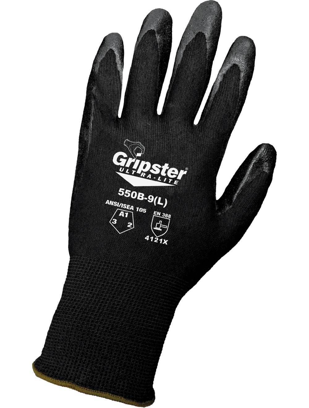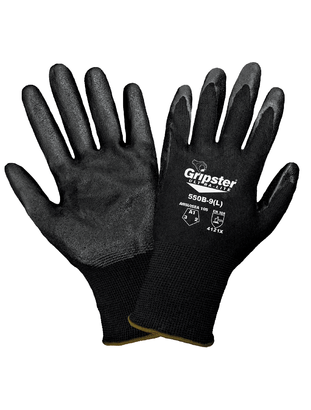Global Glove Gripster® Ultra-Lite Black Foam Nitrile Coated Nylon Gloves with Cut, Abrasion, and Puncture Resistance