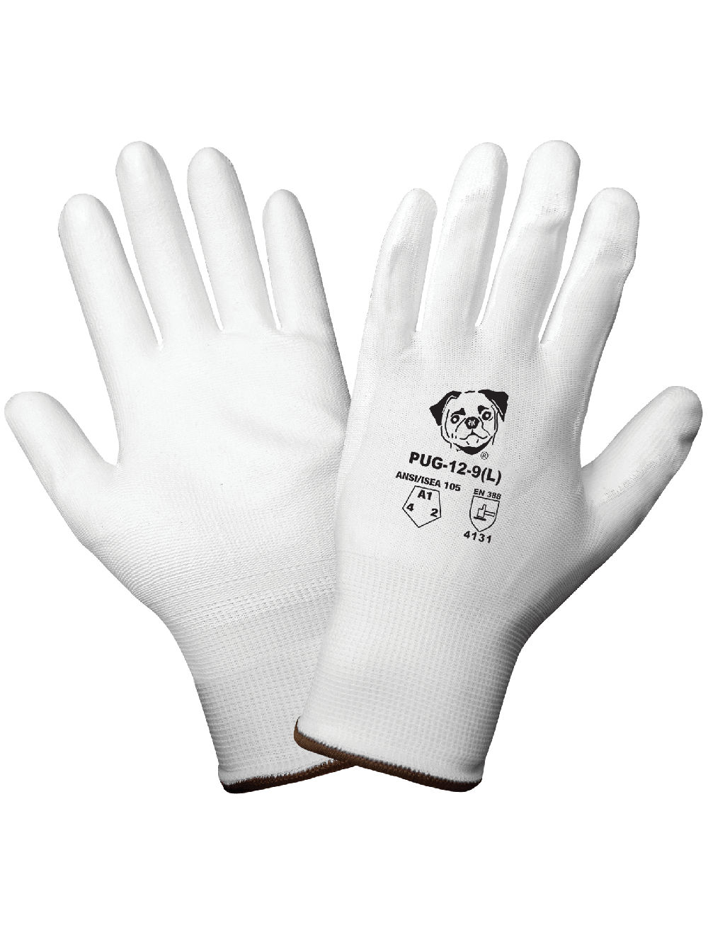 Global Glove PUG™ White Lightweight Polyurethane Coated Anti-Static/Electrostatic Compliant Nylon Gloves with Cut, Abrasion, and Puncture Resistance