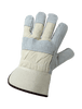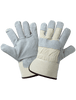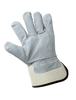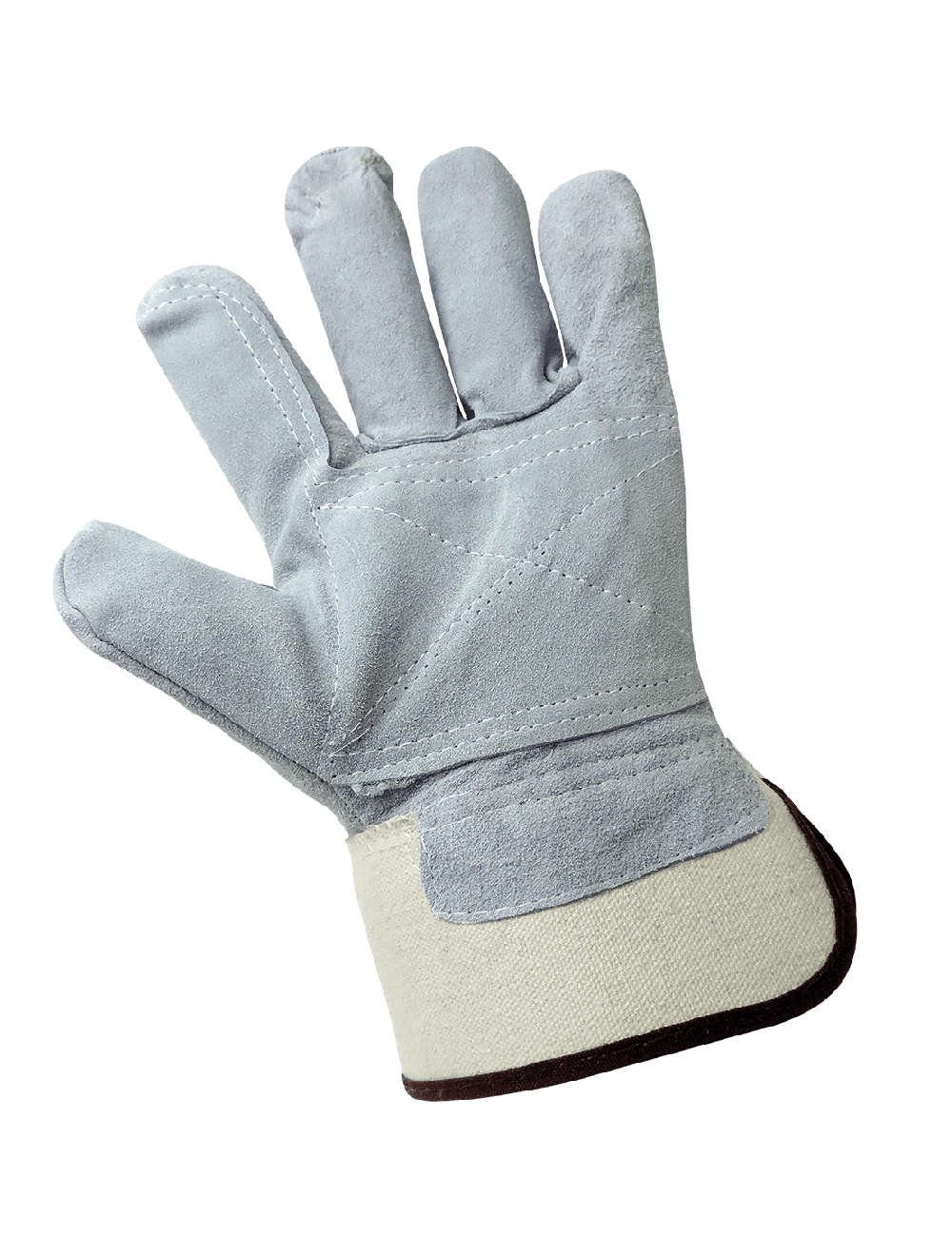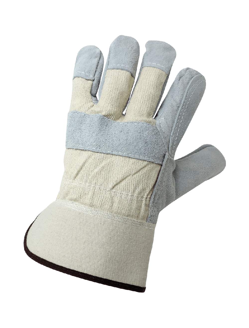 These standard-grade gunn cut gloves have a gray split cowhide leather palm and a natural color 8 oz canvas back. A double-layer palm, thumb, and index finger provide added protection, along with a leather knuckle band on the back of the hand. The wing thumb reduces hand fatigue. A washable double-layer duck safety cuff allows for easy donning and quick removal.