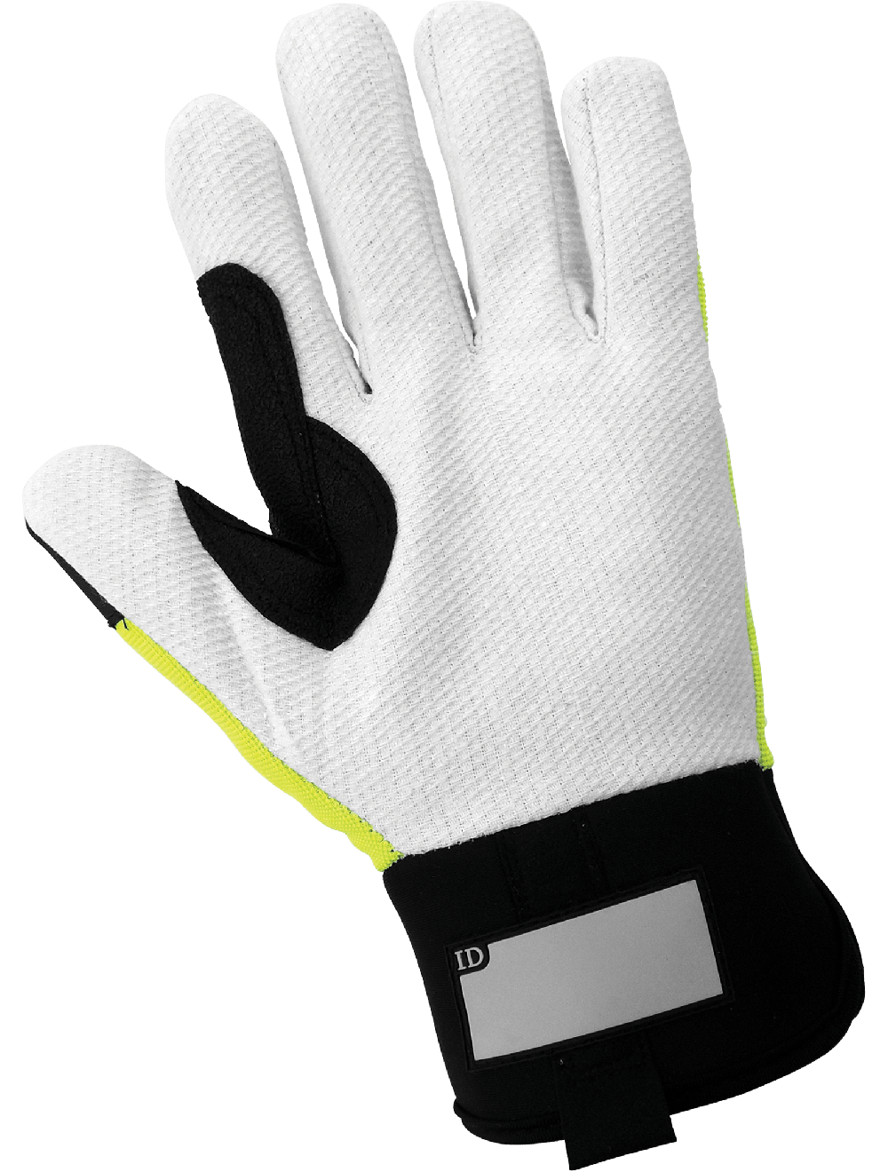 - Contrasting superior grade white cotton corded palm with positive grip enhancement