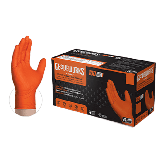 Best for managing tough jobs with premium RDT (Raised Diamond Texture) benefits of liquid channeling and reduced sweating. Thicker 8-mil option. Material: Nitrile Thickness (Palm): 8 Grade: Industrial Color: OrangeRegular price From $22.24 -