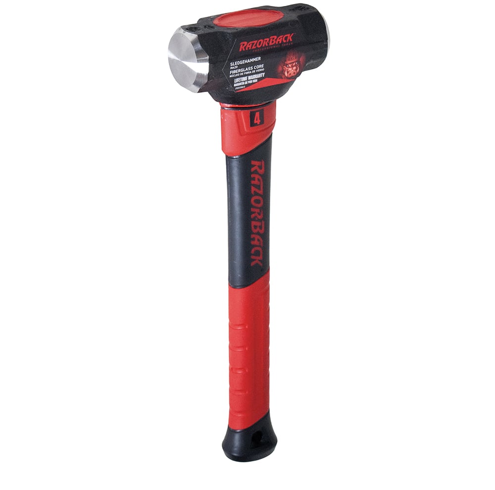 The RAZOR-BACK #4 Engineer Hammer is constructed with a 15-inch fiberglass handle and forged steel head. This hammer is perfect for demolition work and makes driving spikes or wedges easier. The patented head to handle connection has a reinforced steel pin for improved safety and is a great choice for outdoor professionals.