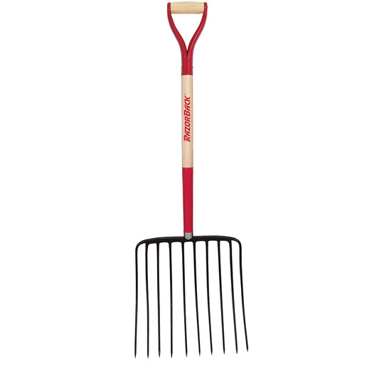 Razor-Back 10 Tine Ensilage Fork, Forged, with Wood Handle and Steel D-Grip