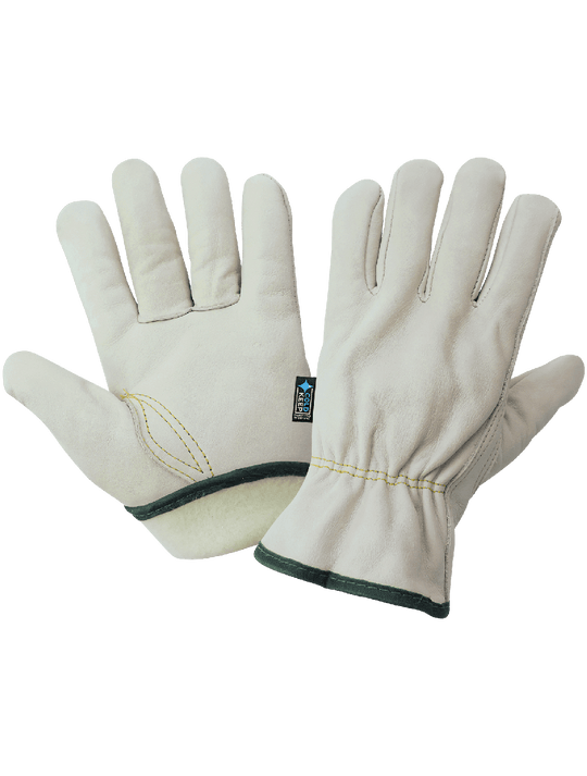 Global Glove Retail-Tagged Driver Style Cowhide Leather Gloves with Cold Keep® Insulation
