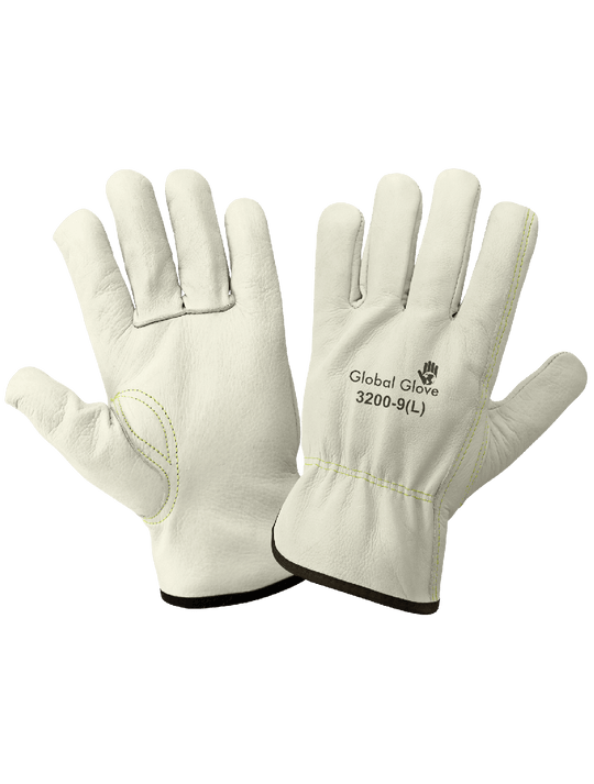 Global Glove Premium-Grade Grain Cowhide Drivers Gloves with Keystone Thumb