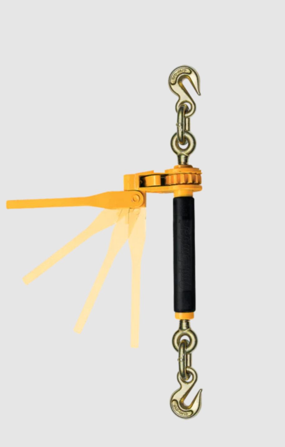 The QuikBinder is a ratchet binder like nothing you've seen before. Its unique vinyl coated barrel on the free spin gear gives you a firm grip so you can take up as much slack on the chain as possible before ratcheting into final position. Quickly switch from extension, to take-up, or use the free spin mode for fast adjustment in either direction. Its patented folding handle lets you quickly secure the load, and then tuck the handle out of the way from any potential snag. When the load is secure, be sure to use the QuikBinder Lock to ensure the safety of your cargo and protect against tampering.