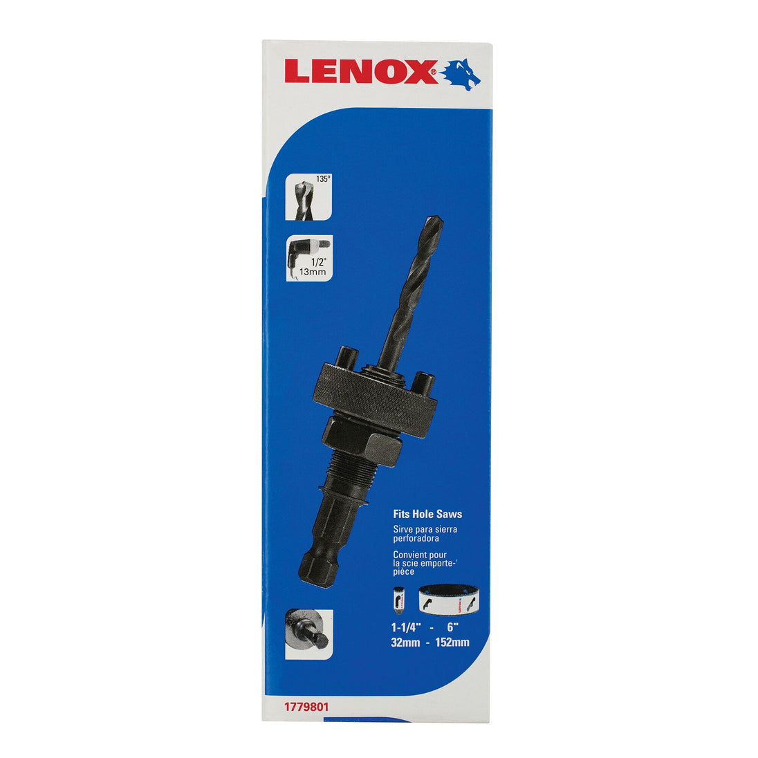 The LENOX® 2L Standard Hole Saw Arbor is a durable, long lasting arbor that works with most hole saws. The 2L Arbor Simply allows you to screw the hole saw onto the arbor, slide up the drive pins and lock it in. The arbor also allows for you to replace the pilot bits through the use of a hex key and a set screw.