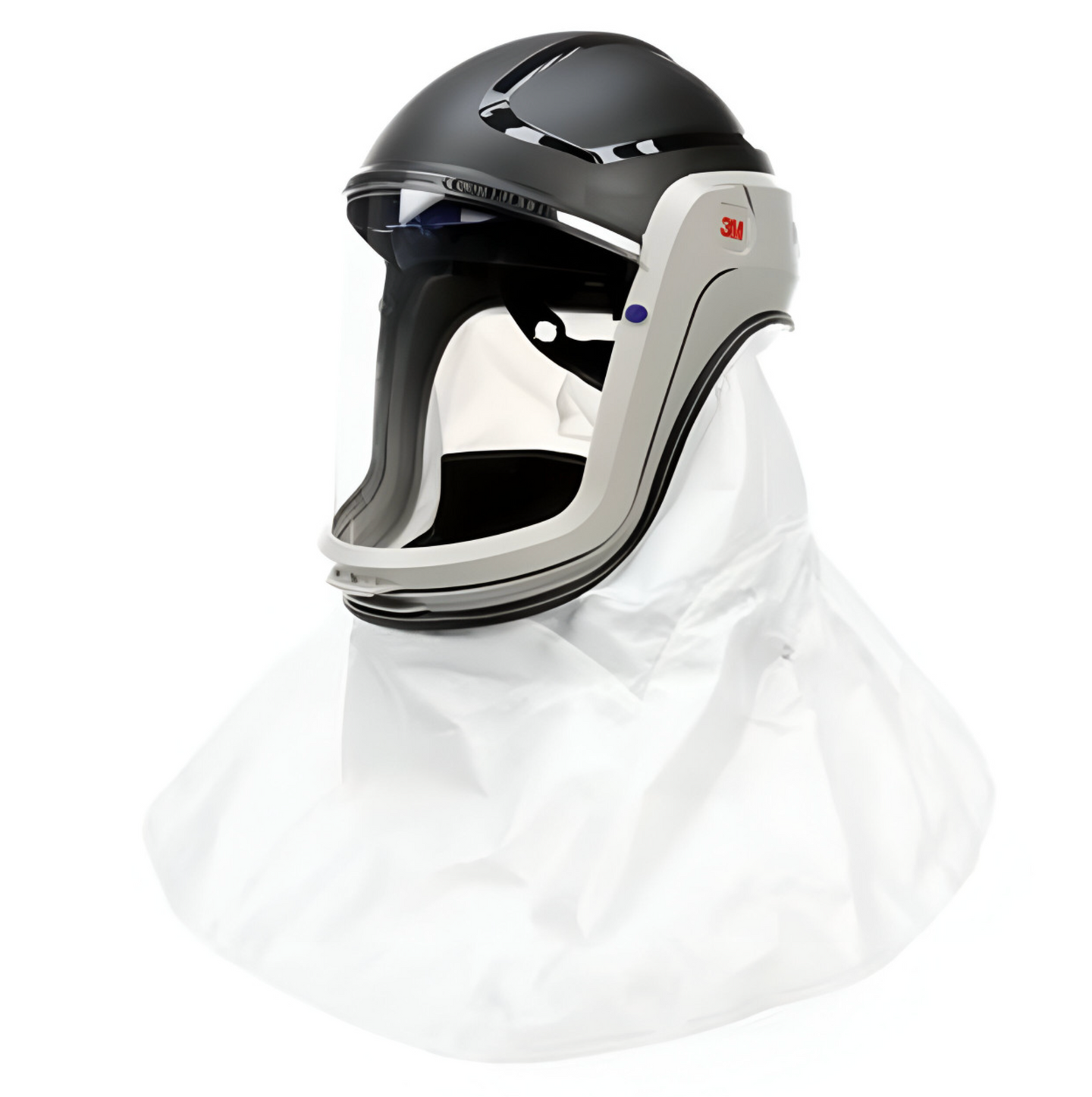 The M-405 assembly includes a M-925 Visor, M-444 Inner Collar, and M-445 Outer Shroud. The M-925 visor is made of polycarbonate. The M-445 shroud is appropriate for general purpose use. Used with an approved air source, M-400 Series helmets provide respiratory (OSHA APF=1000) and limited head (ANSI Z89.1-2003 Type 1 Class G) and eye (ANSI Z87.1-2010) protection. The M-405 assembly includes a standard visor and standard shroud.