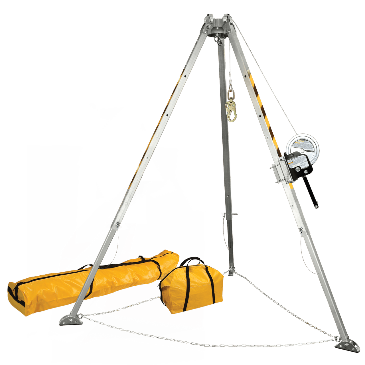 - System Kit includes Tripod, 60' stainless steel cable Personnel Winch, leg bracket and leg safety chain