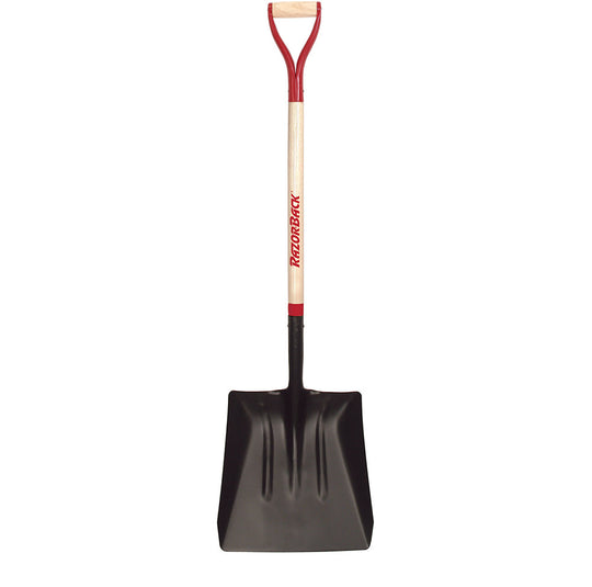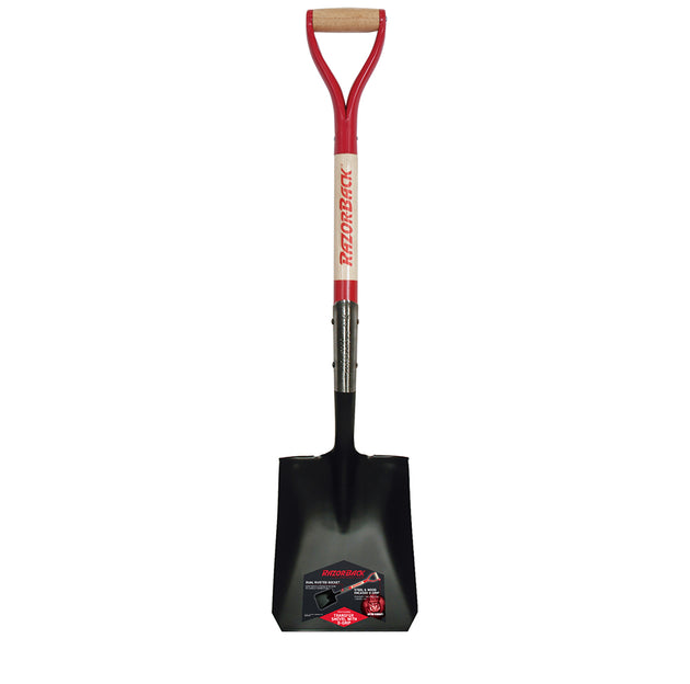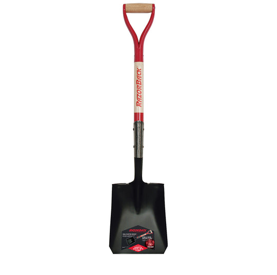 Razor-Back Square Point Shovel With Tab Socket And Rolled Step, Wood Handle And D-Grip